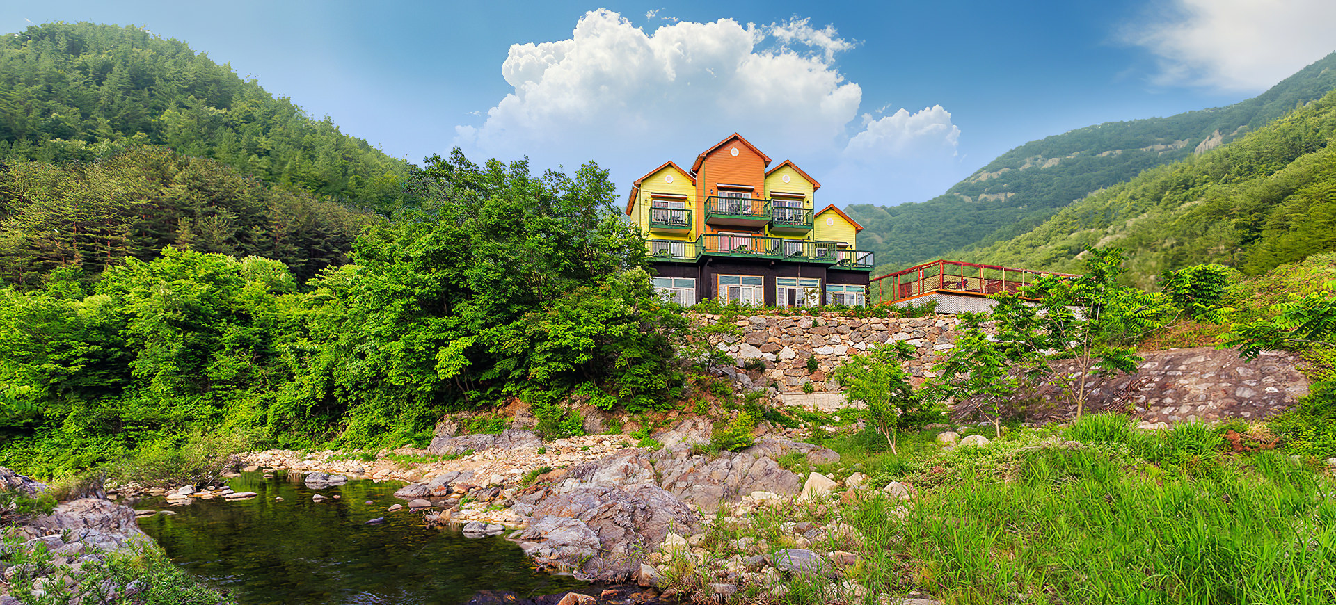 7개의 모든 객실에서는 편안함과 계곡이 내려다 보이는 탁트인 전망,